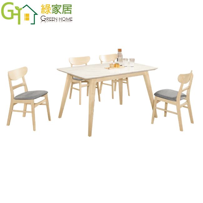 【綠家居】德斯韋實木4尺雲紋石面餐桌布餐椅組合(一桌四椅組合)