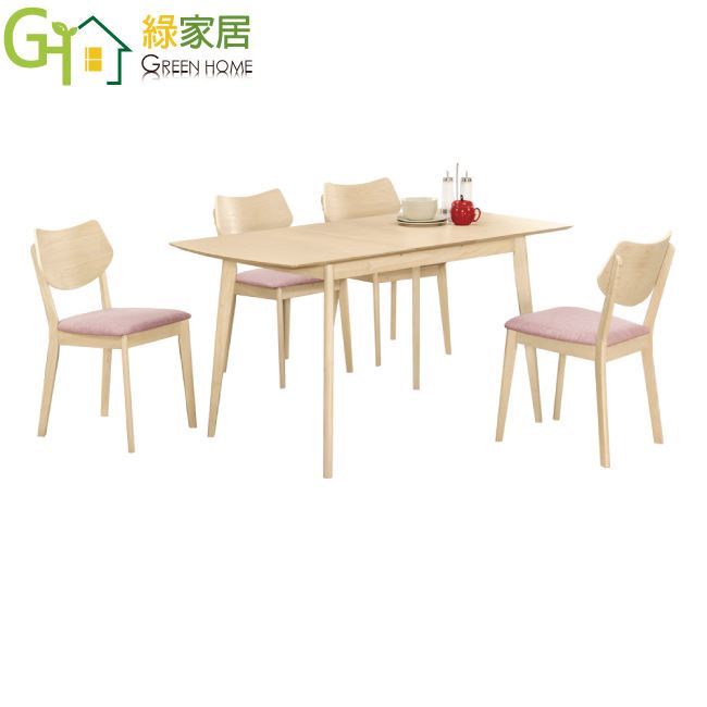 【綠家居】德莉特4尺可伸縮實木餐桌布餐椅組合(一桌四椅組合+120-150cm伸縮使用)