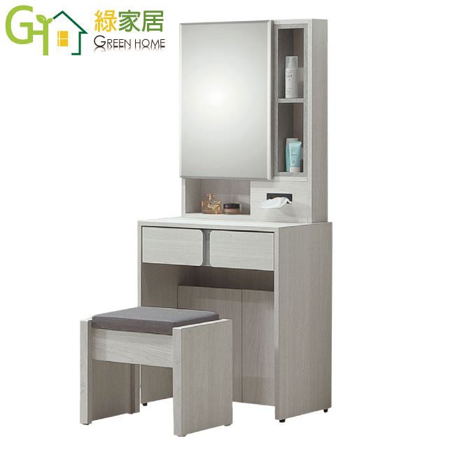【綠家居】菲奧1.9尺開合式鏡台組合(含化妝椅)
