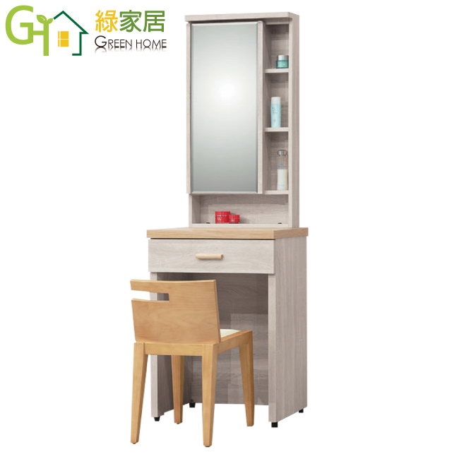 【綠家居】泰順2尺開合式鏡面鏡台組合(含化妝椅)