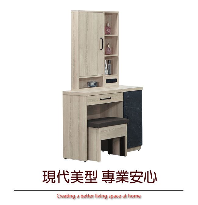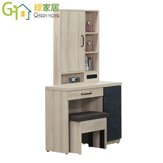 【綠家居】可倫坡 現代2.7尺開合式鏡台/化妝台(含化妝椅)