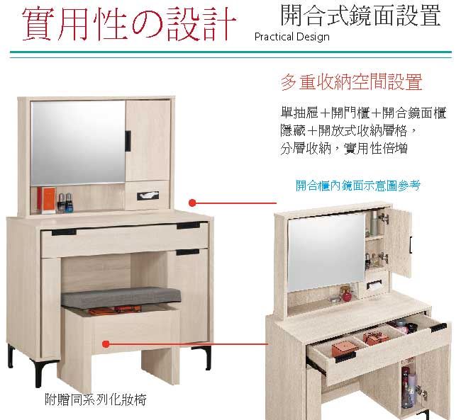 【綠家居】柏麗 開合式2.7尺鏡台/化妝台組合(鏡台+化妝椅)