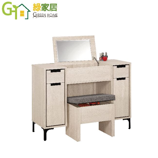 商品介紹 | 【綠家居】柏麗 上掀式2.7尺鏡台/化妝台組合(鏡台+化妝椅) 橡木紋色系+現代簡約風格+安心材質製造,鏡台整體採用防蛀木心板+五金滑軌結構+強化玻璃鏡面+黑鐵砂腳座等安心材質製造,外層採用優利坦全包式耐磨噴漆處理搭配上掀式鏡面櫃+拉合櫃+二抽屜+開放&隱藏式收納等收納設計,全由專人配送到家,專業安心服務,替你省下更多時間! 【商品特色】 橡木紋色系+現代簡約風格+安心材質製造,使用放心+搭配居家更便利 鏡面蓋合時化妝台可作為書桌使用,一物二用增加居家便利機能性 鏡台採用防蛀木心板+五金滑軌結構+強化玻璃鏡面+黑鐵砂腳座等安心材質製造 上掀式鏡面櫃+拉合櫃+二抽屜+開放&隱藏式收納等收納設計 此商品不需要DIY組立,此商品為組立後之成品 品質保證、專業設計、貼心服務 全由專人配送到家,專業安心服務,替您省下更多時間 |