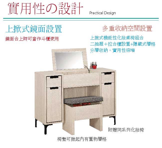 【綠家居】柏麗 上掀式2.7尺鏡台/化妝台組合(鏡台+化妝椅)