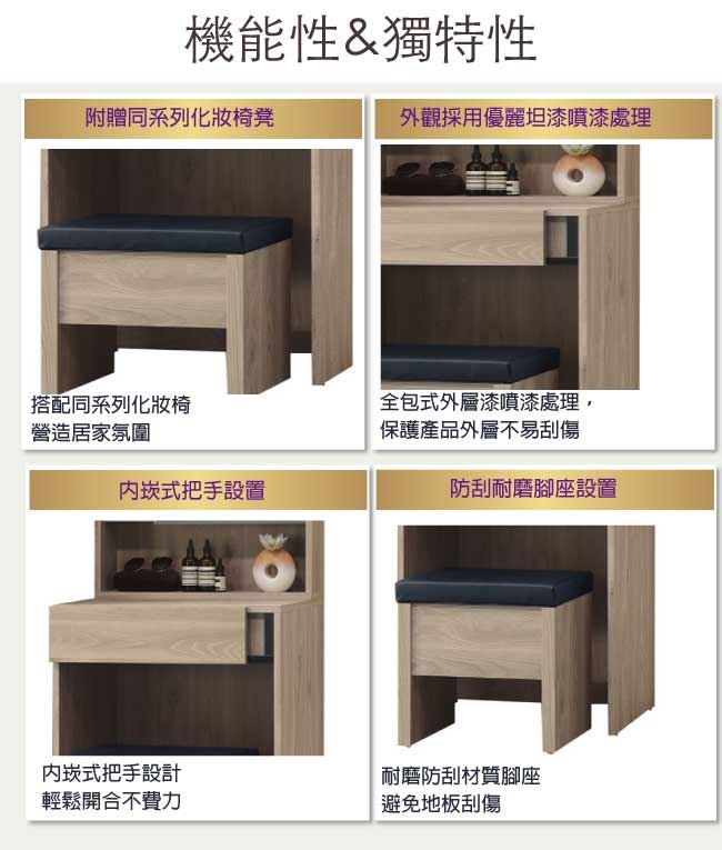 【綠家居】歐妮 時尚2尺開合式鏡台/化妝台組合(含化妝椅)