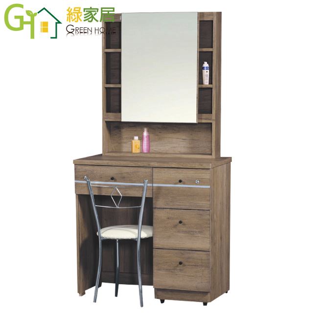 【綠家居】查莫 開合式鏡台/化妝台組合(含化妝椅)