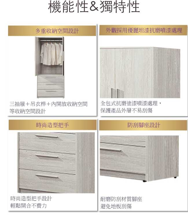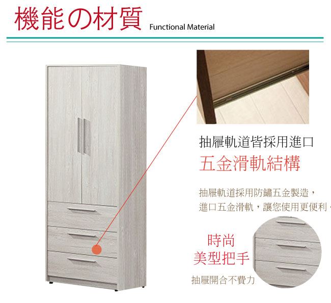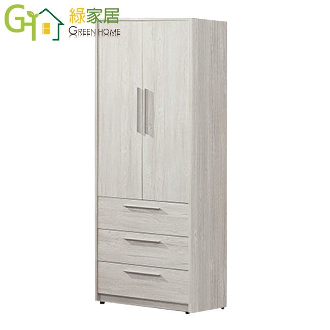 【綠家居】巴菲 淺橡2.7尺二門三抽高衣櫃