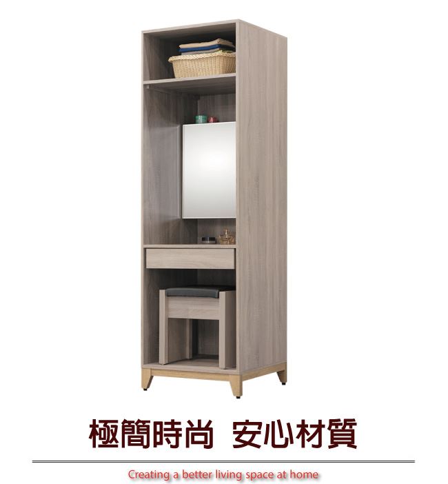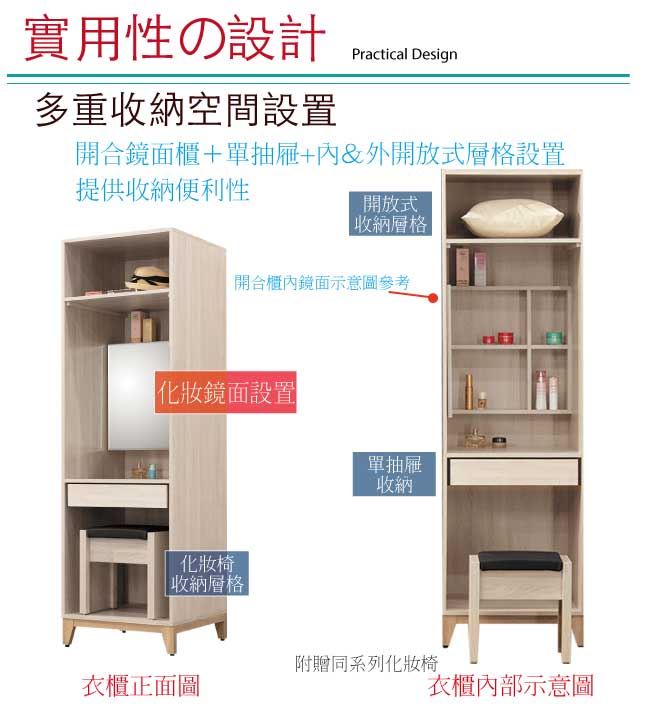 【綠家居】查德 時尚2尺化妝鏡面衣櫃/高化妝台(二色可選+含化妝椅)