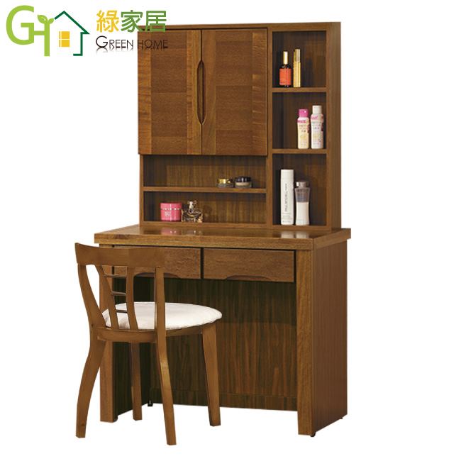 【綠家居】柏林 時尚2.9尺實木開合式鏡台/化妝台組合(含化妝椅)
