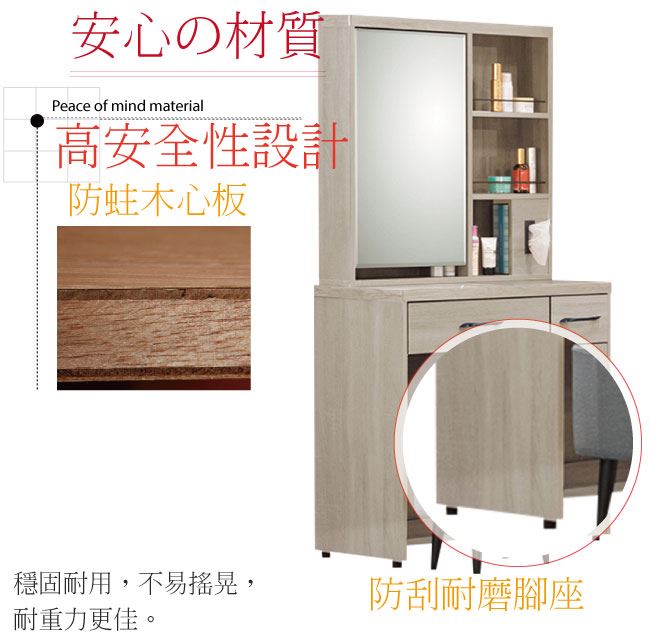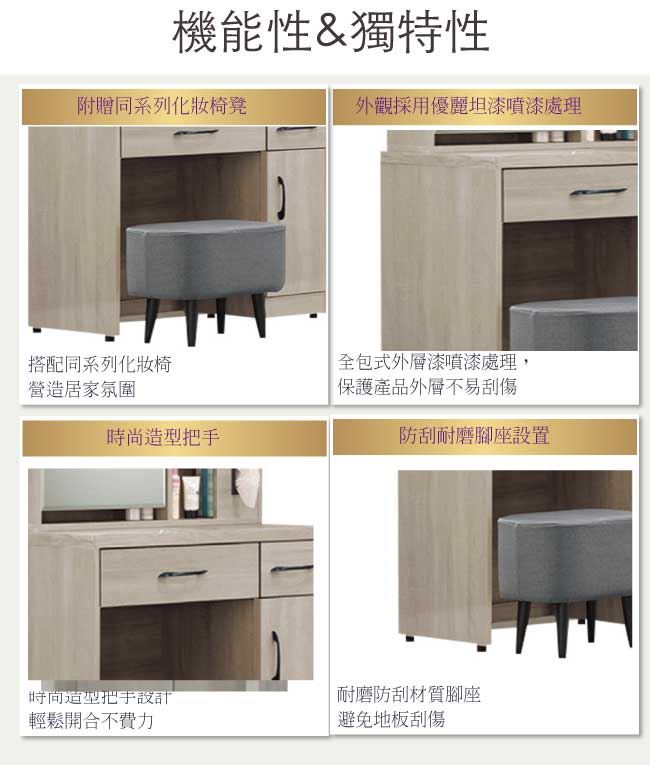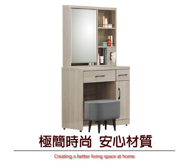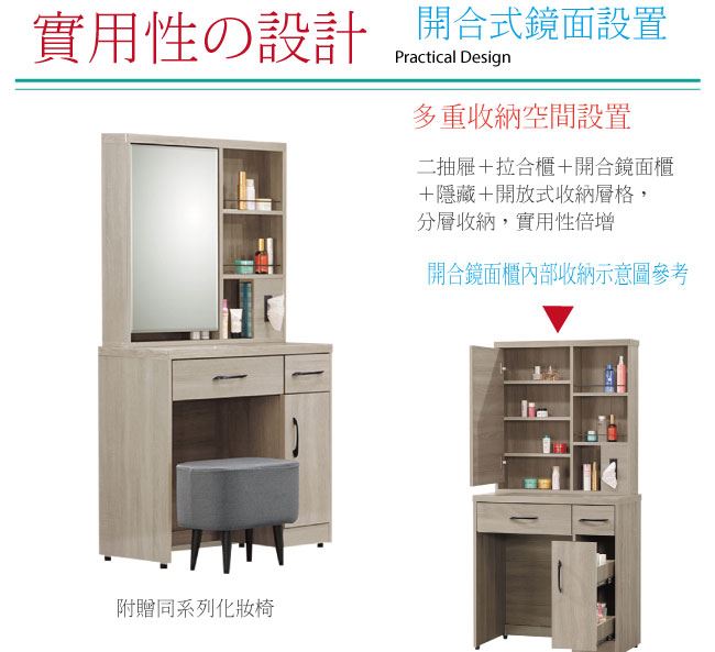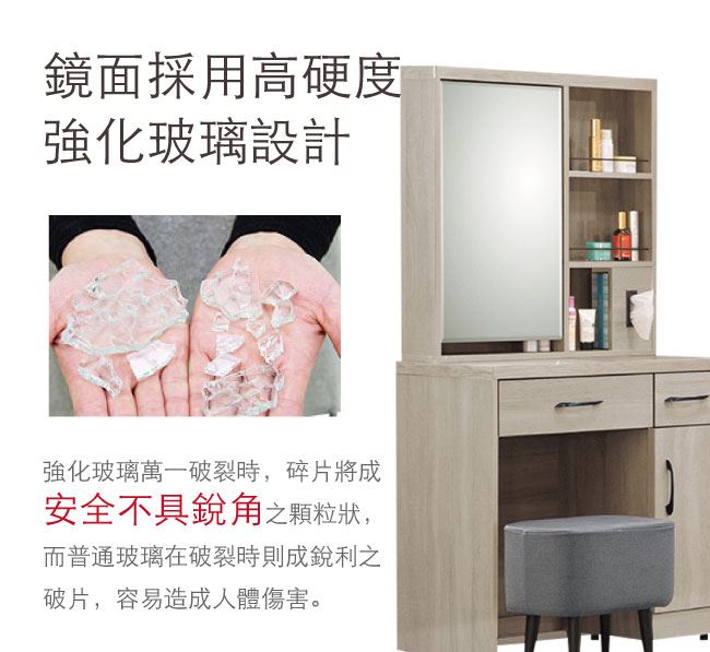 - ◆產品名稱:【綠家居】毛利2.6尺開合式鏡面鏡台/化妝台組合(含化妝椅)