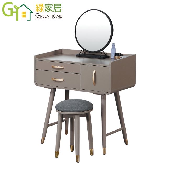 【綠家居】卡利2.7尺固定式鏡面鏡台/化妝台組合(三色可選+含化妝椅)