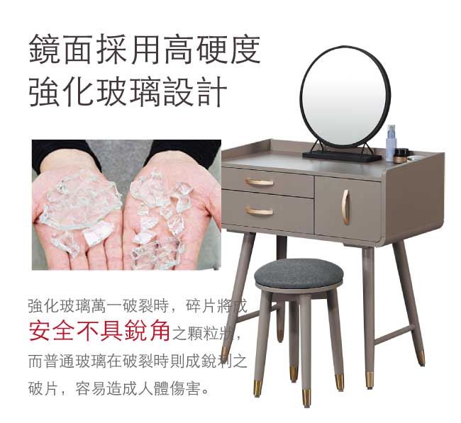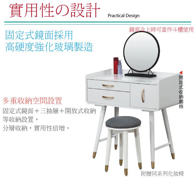 - ◆產品名稱:【綠家居】卡利2.7尺固定式鏡面鏡台/化妝台組合(三色可選+含化妝椅)