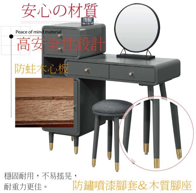 - ◆產品名稱:【綠家居】卡夢2.7尺固定式鏡面可伸縮鏡台/化妝台組合(二色可選+含化妝椅)