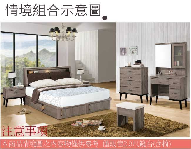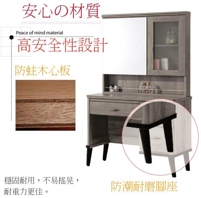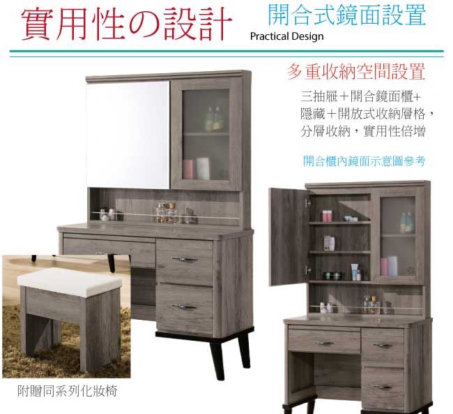 【綠家居】查倫 灰橡2.9尺開合式鏡台/化妝台組合(含化妝椅)