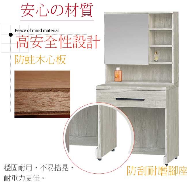 【綠家居】夏艾亞淺橡2.5尺開合式鏡面化妝台/鏡台(含化妝椅)