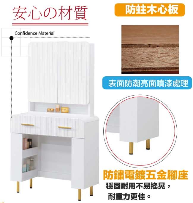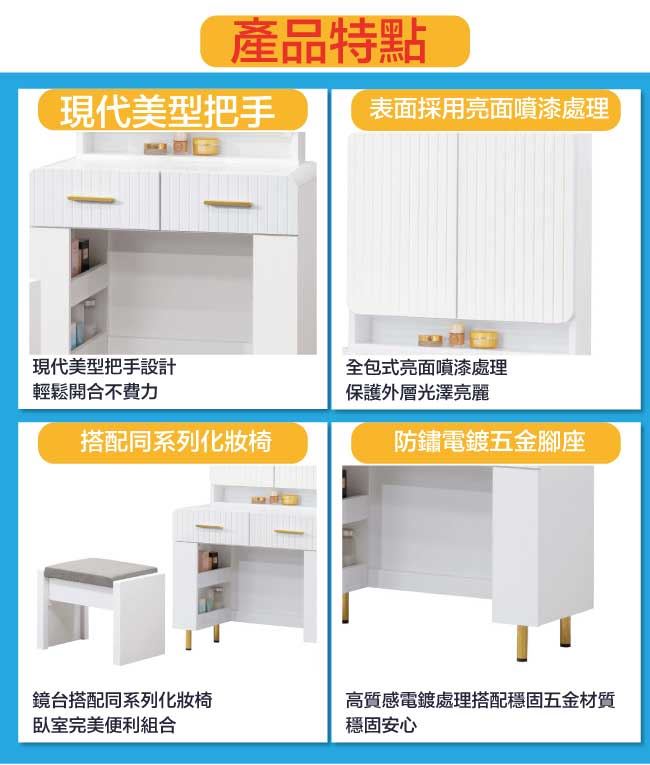 【綠家居】培亞輕奢白2.3尺開合鏡面二抽鏡台/化妝台組合(含化妝椅)
