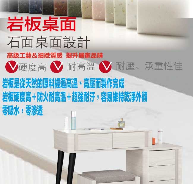 高硬度岩板桌面+五金滑軌結構