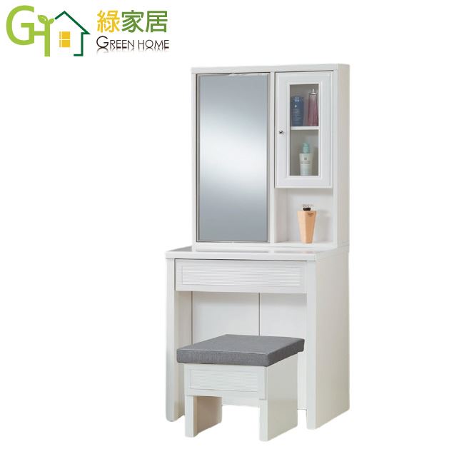 【綠家居】欣安2尺旋轉式鏡面化妝台/鏡台(三色可選+含單抽格收納化妝椅)