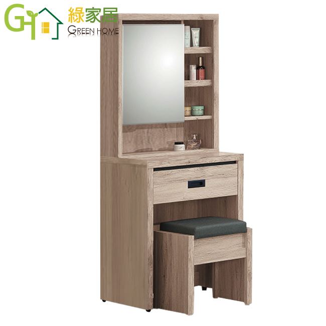 【綠家居】倫帝2尺開合式鏡面化妝台/鏡台組合(含化妝椅)
