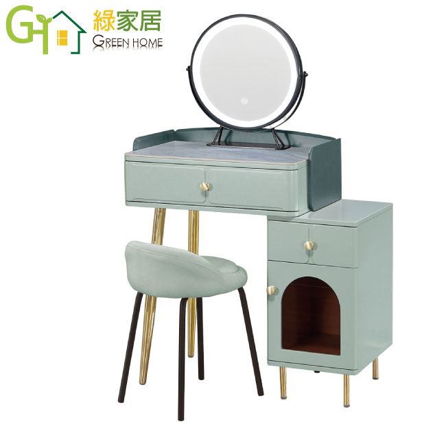【綠家居】布林肯岩板2.7尺二抽單門固定鏡面鏡台/化妝台組合(含化妝椅)