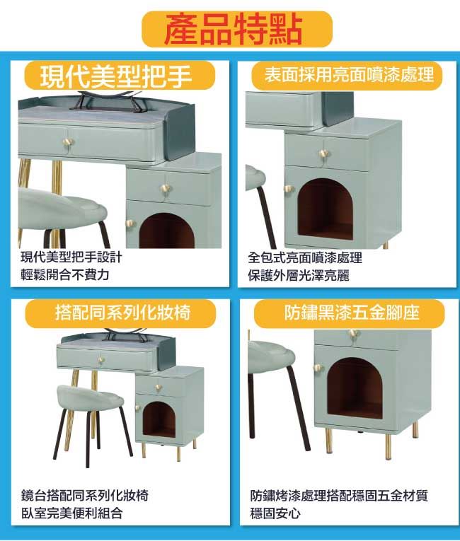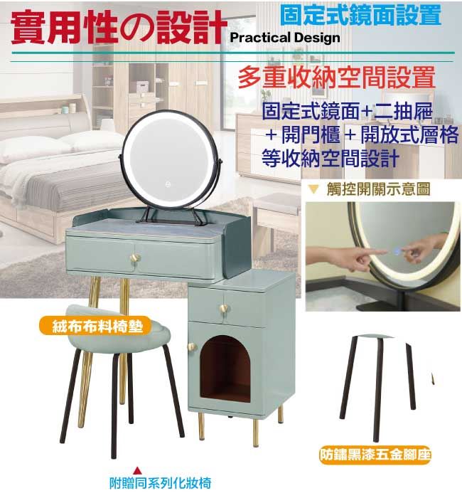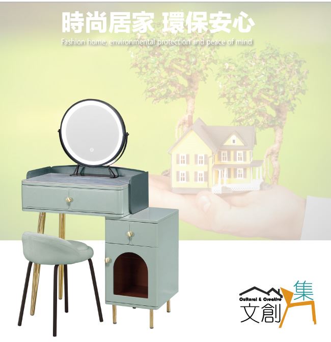 商 品 介 紹 | 【綠家居】布林肯岩板2.7尺二抽單門固定鏡面鏡台/化妝台組合(含化妝椅) 質感灰色系+現代簡約風格+安心材質製造,整體採用防潮MDF板+防鏽金漆五金腳座+五金滑軌結構+8mm高硬度岩板桌面板+強化玻璃鏡面+觸碰式開關LED鏡面燈等安心材質製造,產品外層採用防潮耐磨噴漆處理搭配採用固定式鏡面+二抽屜+開門櫃+開放式層格等收納空間設計,全由專人配送到家,專業安心服務,替你省下更多時間! 【商品特色】 質感灰色系+現代簡約風格+安心材質製造,使用放心+搭配居家更便利 採用防潮MDF板+防鏽金漆五金腳座+五金滑軌結構+8mm高硬度岩板桌面板+強化玻璃鏡面+觸碰式開關LED鏡面燈等安心材質製造 產品外層採用防潮耐磨噴漆處理 採用固定式鏡面+二抽屜+開門櫃+開放式層格等收納空間設計 此商品不需要DIY組立,此商品為組立後之成品 品質保證、專業設計、貼心服務 全由專人配送到家,專業安心服務,替您省下更多時間 |