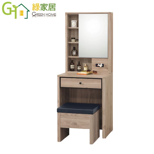 【綠家居】路馬爾2尺開合式鏡面化妝台/鏡台組合(含化妝椅)