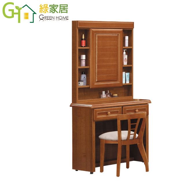 【綠家居】杜利絲2.7尺實木開合式鏡面化妝台/鏡台組合(含化妝椅)