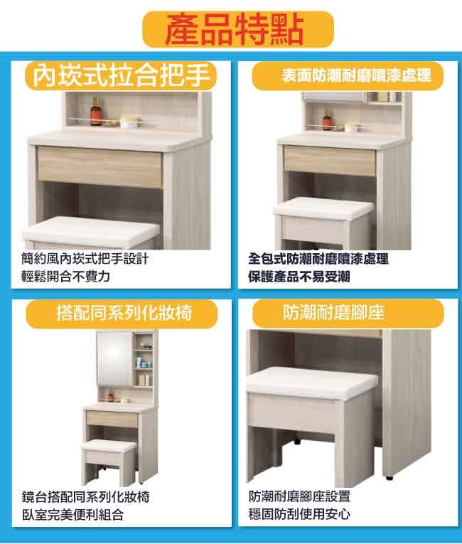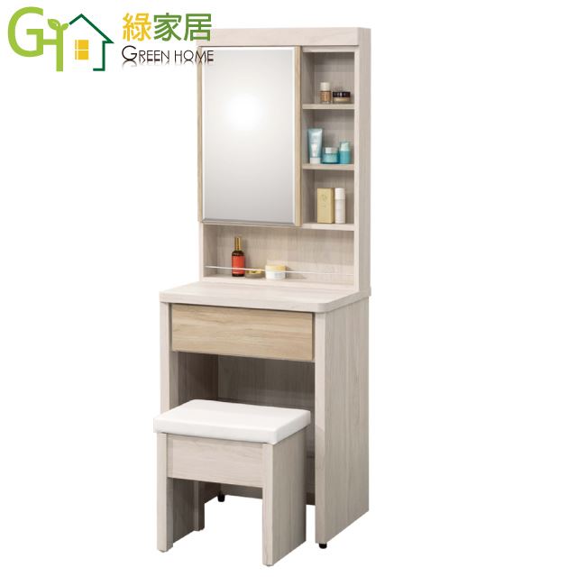 【綠家居】葛特雙色2.1尺開合式鏡面鏡台組合(含化妝椅)