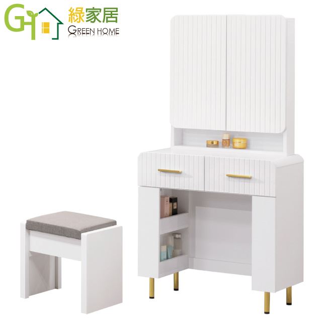 【綠家居】安卡雙色2.3尺開合鏡面鏡台組合(含化妝椅)