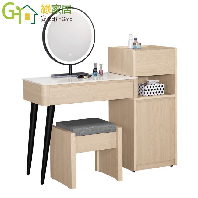 【綠家居】維爾岩板2.7尺觸控伸縮鏡台組合(含化妝椅)