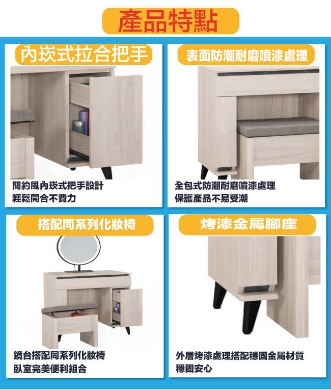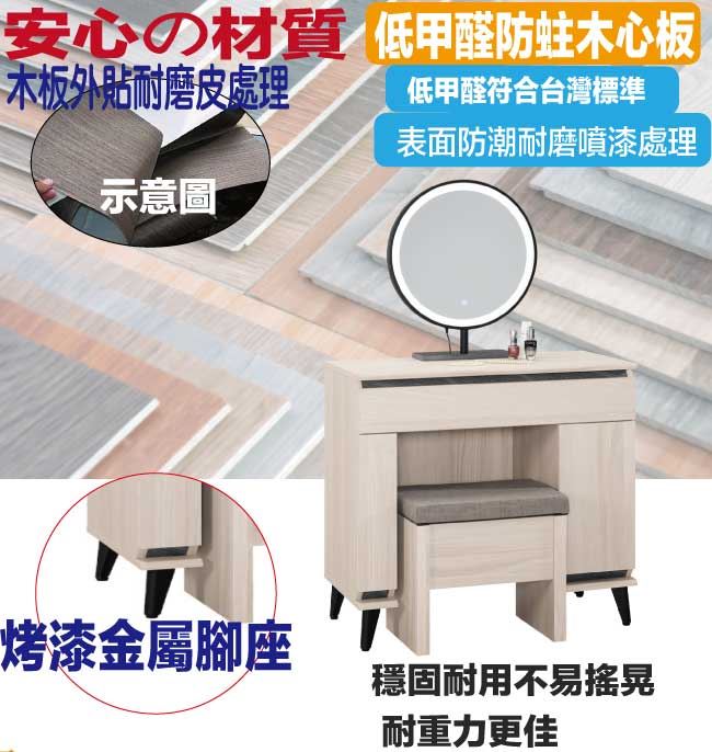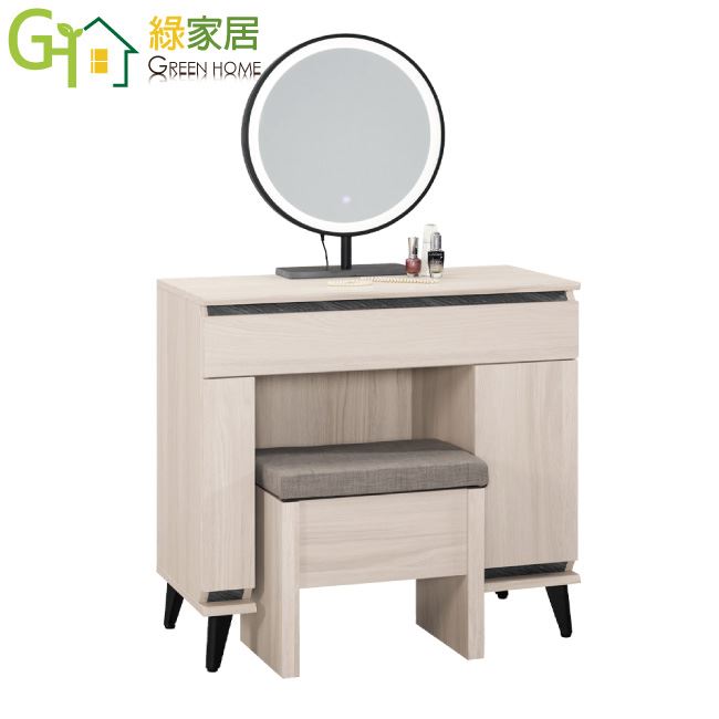 【綠家居】納莉爾2.7尺觸控鏡面鏡台組合(含化妝椅)