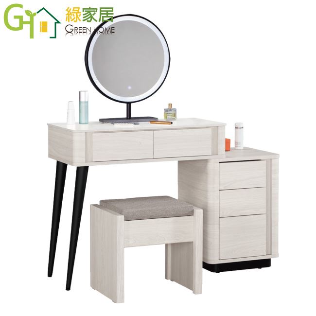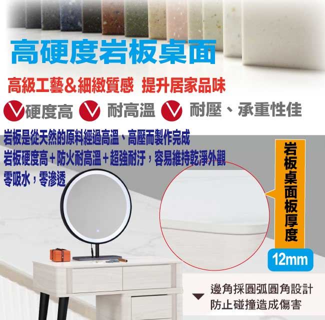 【綠家居】莉諾爾岩板2.7尺觸控伸縮鏡台組合(含化妝椅)
