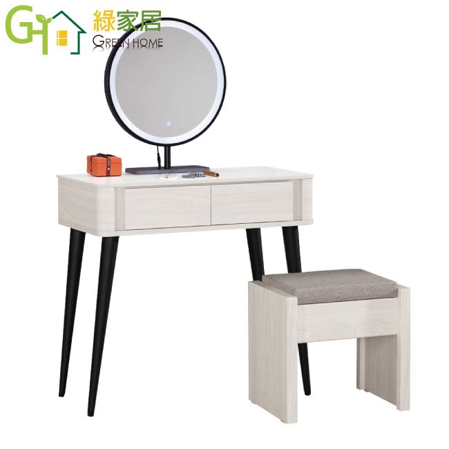 【綠家居】莉諾爾岩板2.7尺觸控鏡面鏡台組合(含化妝椅)