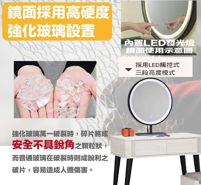 - 觸控式鏡面+二抽屜+開放式桌面