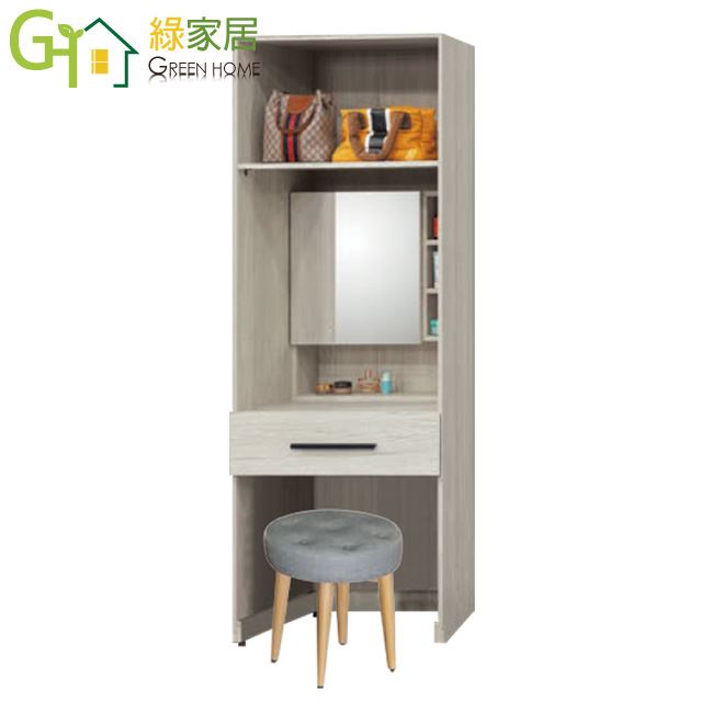 【綠家居】瑪丹2.5尺開合式鏡面櫃組合(含化妝椅)