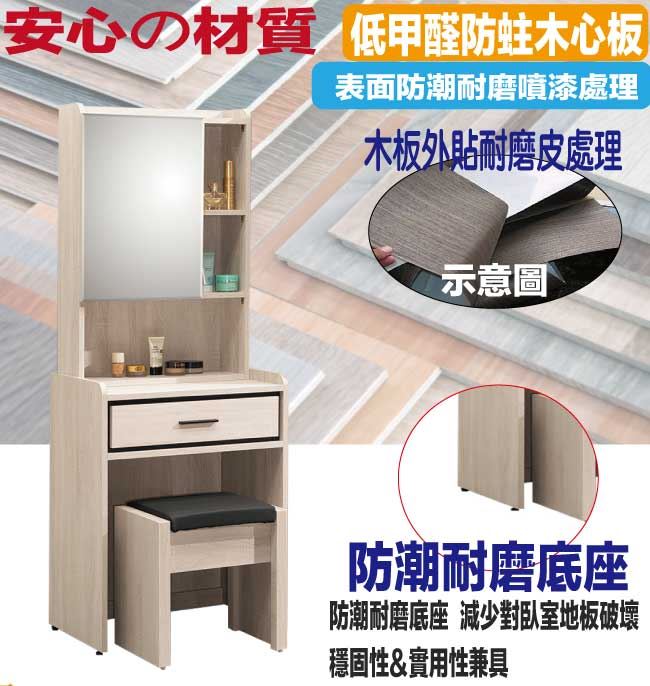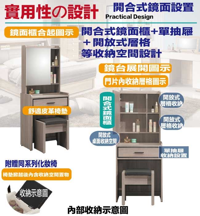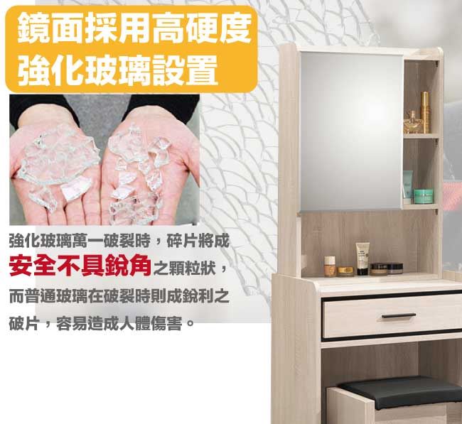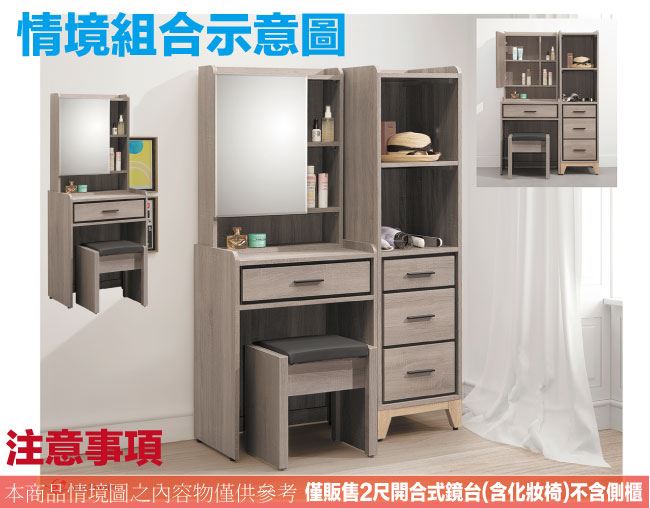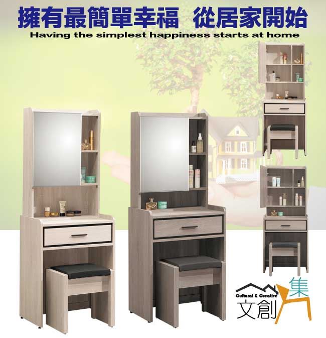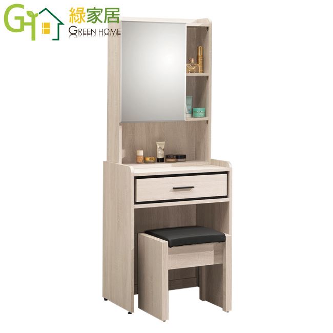 【綠家居】悅卡2尺開合式鏡台組合(二色可選+含化妝椅)