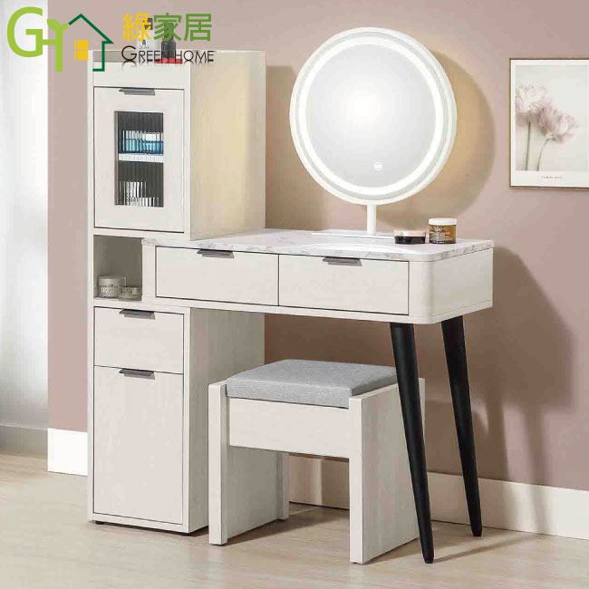 商 品 介 紹 | 【綠家居】菲可達2.7尺觸控鏡面可伸縮鏡台組合 淺橡木紋色系+現代簡約風格+安心材質製造,使用放心+搭配居家更便利,整體採用防蛀木心板+五金滑軌結構+強化玻璃鏡面+防潮耐磨底座&烤漆金屬腳座+仿大理石紋美耐皿面板等材質搭配外層採用防潮耐磨噴漆處理,採用觸控鏡面+三抽屜+開門櫃+開門櫃+內&外開放收納層格等收納空間設計,全由專人配送到家,專業安心服務,替你省下更多時間! 【商品特色】 淺橡木紋色系+現代簡約風格+安心材質製造,使用放心+搭配居家更便利 此組鏡台組合含可收納化妝椅搭配,化妝椅座墊可掀起內含收納層格可用來置放私人物品,增加實用機能性 防蛀木心板+五金滑軌結構+強化玻璃鏡面+防潮耐磨底座&烤漆金屬腳座+仿大理石紋美耐皿面板等材質 採用觸控鏡面+三抽屜+開門櫃+內&外開放收納層格等收納空間設計 此商品不需要DIY組立,此商品為組立後之成品 品質保證、專業設計、貼心服務 全由專人配送到家,專業安心服務,替您省下更多時間