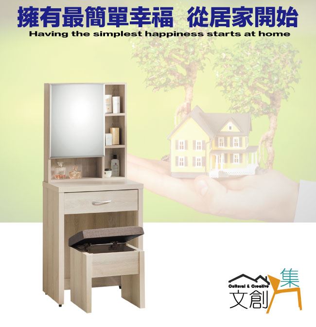 商 品 介 紹 | 【綠家居】法緹2尺開合式鏡面鏡台組合(含化妝椅) 橡木紋色系+現代簡約風格+安心材質製造,使用放心+搭配居家更便利,整體採用防蛀木心板+防潮耐磨底座+強化玻璃鏡面+五金滑軌結構等安心材質製造搭配外層採用優莉坦耐磨全包式噴漆處理 ,採用開合式鏡面櫃+單抽屜+內&外開放層格等收納空間設計,全由專人配送到家,專業安心服務,替你省下更多時間! 【商品特色】 橡木紋色系+現代簡約風格+安心材質製造,使用放心+搭配居家更便利 防蛀木心板+防潮耐磨底座+強化玻璃鏡面+五金滑軌結構等安心材質製造 採用開合式鏡面櫃+單抽屜+內&外開放層格等收納空間設計 此商品不需要DIY組立,此商品為組立後之成品 品質保證、專業設計、貼心服務 全由專人配送到家,專業安心服務,替您省下更多時間