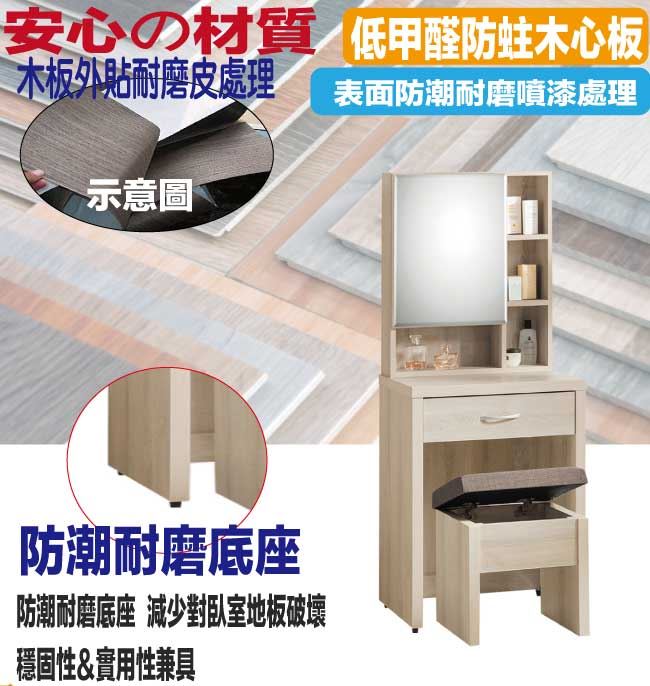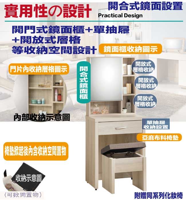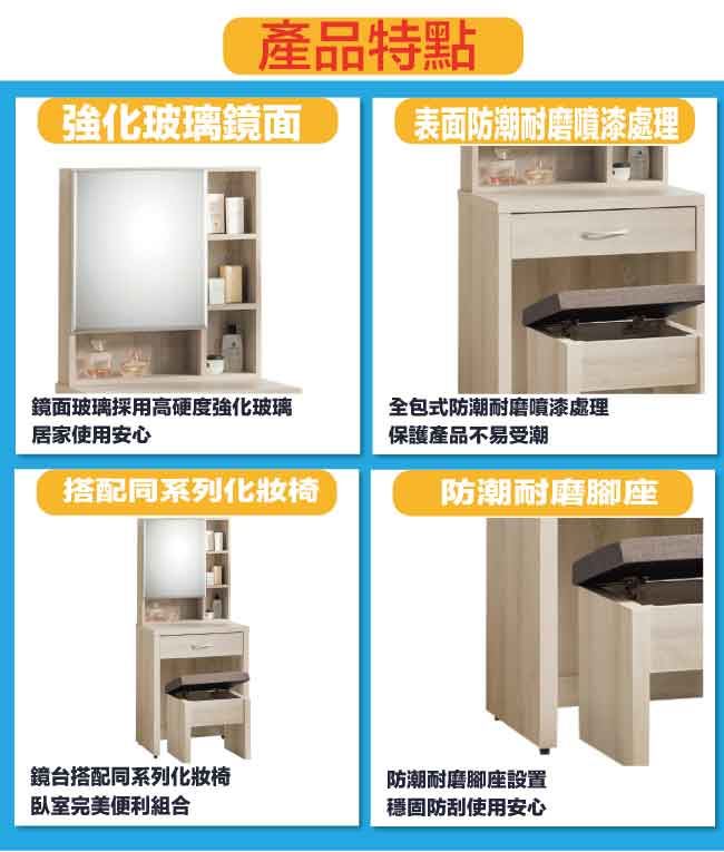 【綠家居】法緹2尺開合式鏡面鏡台組合(含化妝椅)