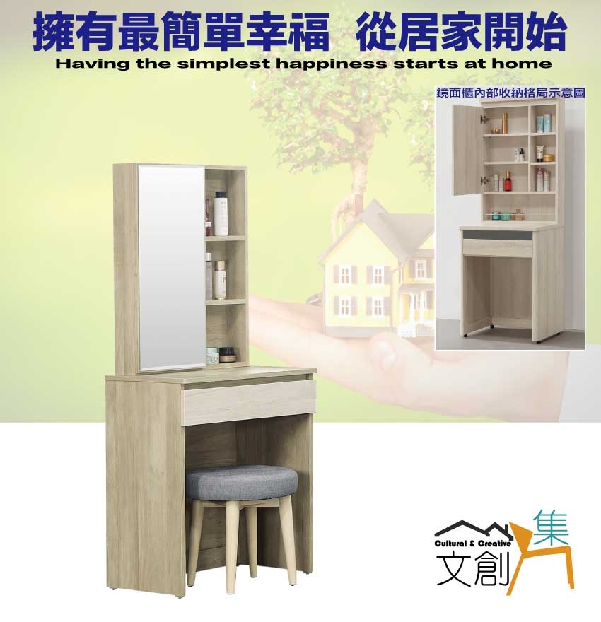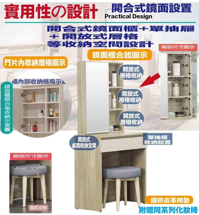 - ◆產品名稱:【綠家居】瑞歐雙色2尺開合式鏡面組合(含化妝椅)