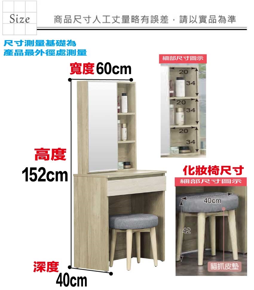 尺寸:(寬)60x(深)40x(高)152/公分