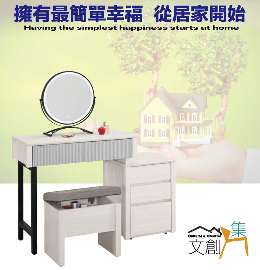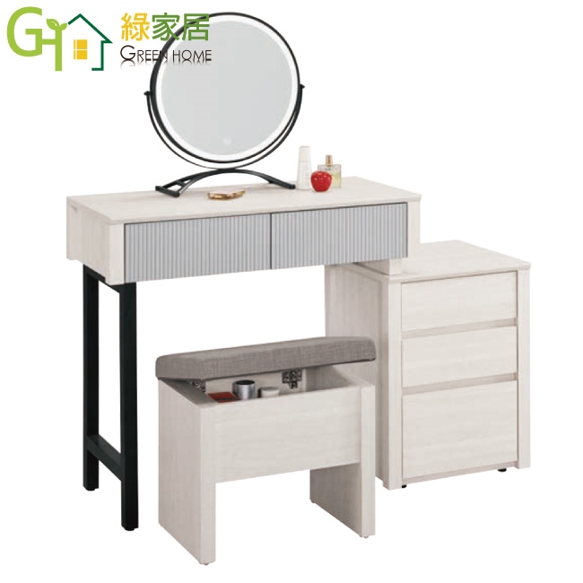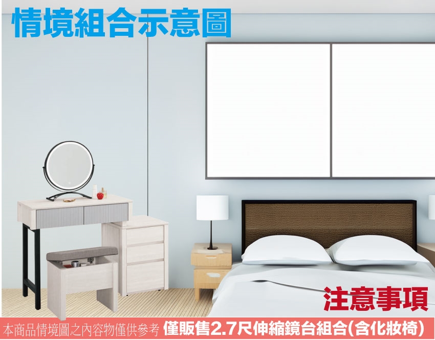 - ◆產品名稱:【綠家居】克萊2.7尺固定鏡面可伸縮鏡台/化妝台組合(含化妝椅)