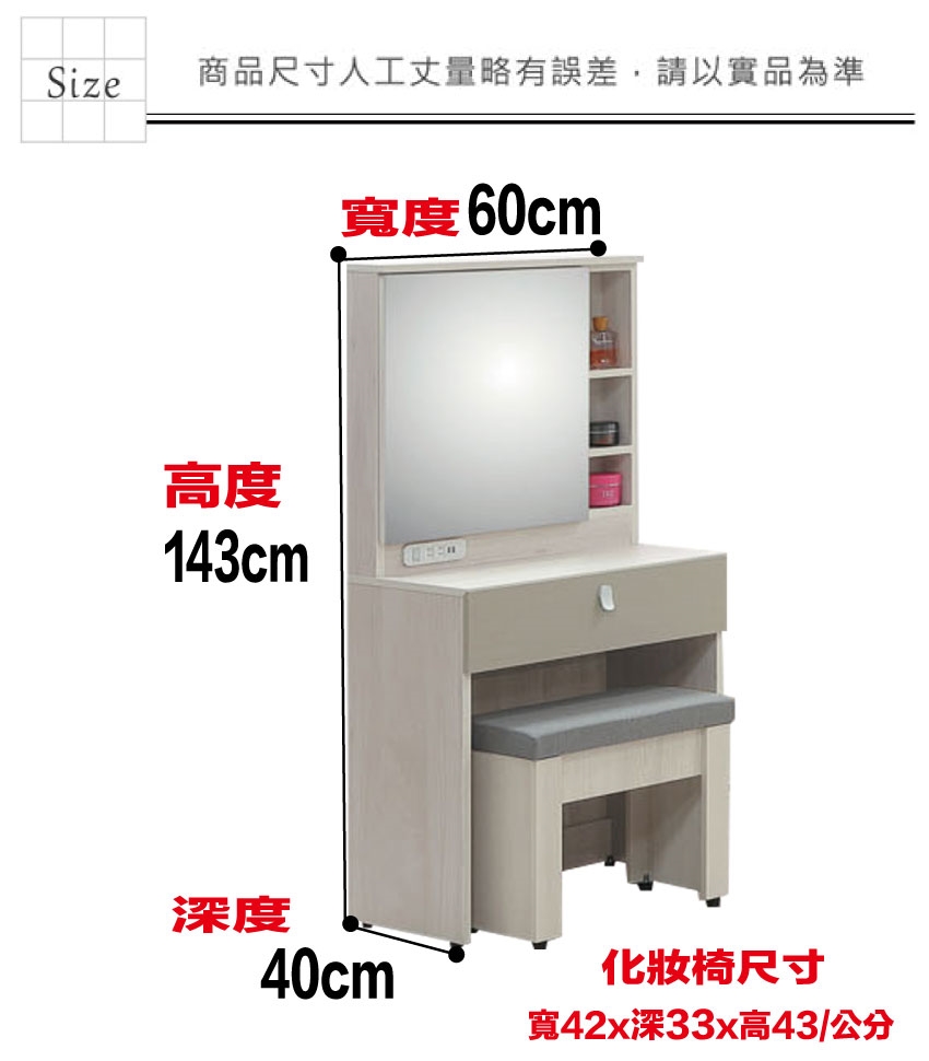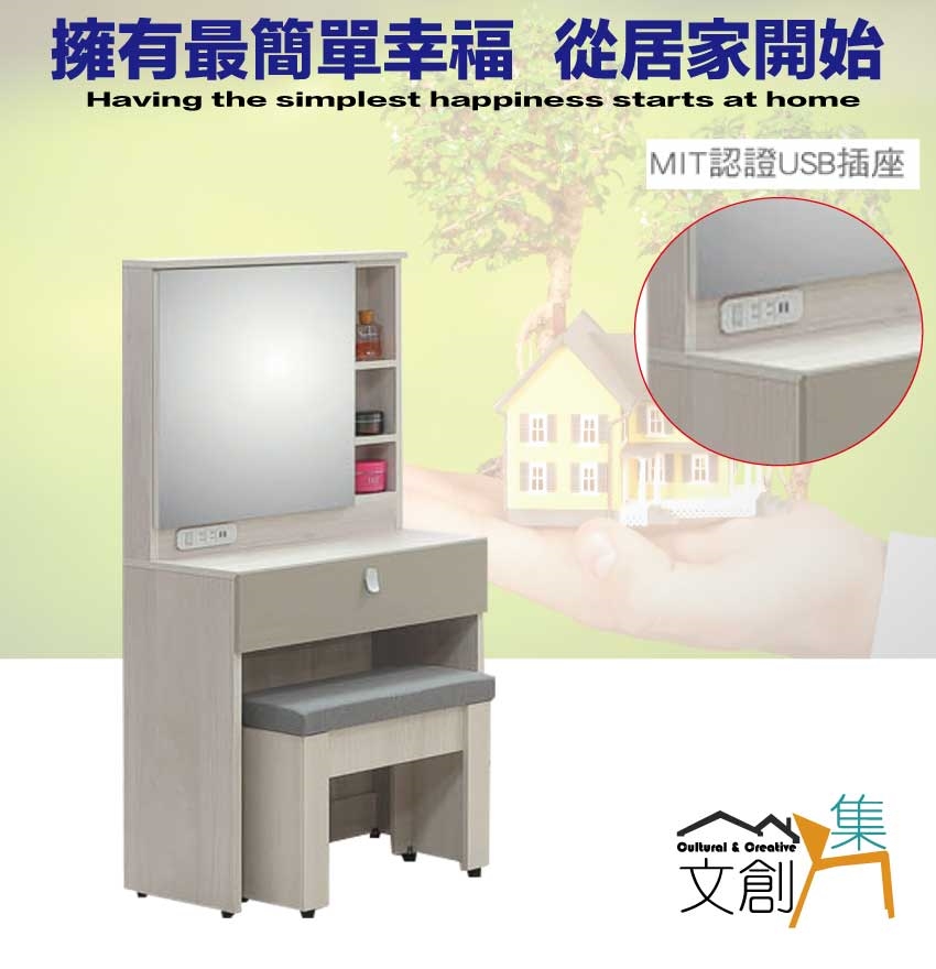 ★偏遠地區需額外加收運費,下標請先問與答詢問★ ★下訂前注意 由於商品流動較快,下訂前請先詢問是否有貨在下訂喔~★ 【綠家居】蒂斯2尺開合鏡面鏡台/化妝台組合(含化妝椅) 木紋雙色系+安心材質製造,使用放心+搭配居家更便利,採用防蛀木心板+防潮耐磨底座+五金滑軌結構+強化玻璃鏡面等安心材質製造 ,外層採用防潮耐磨噴漆處理搭配採用開合鏡面櫃+單抽屜+內&外開放層格+便利插座設置等收納空間設計,全由專人配送到家,專業安心服務,替你省下更多時間!