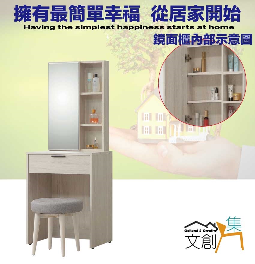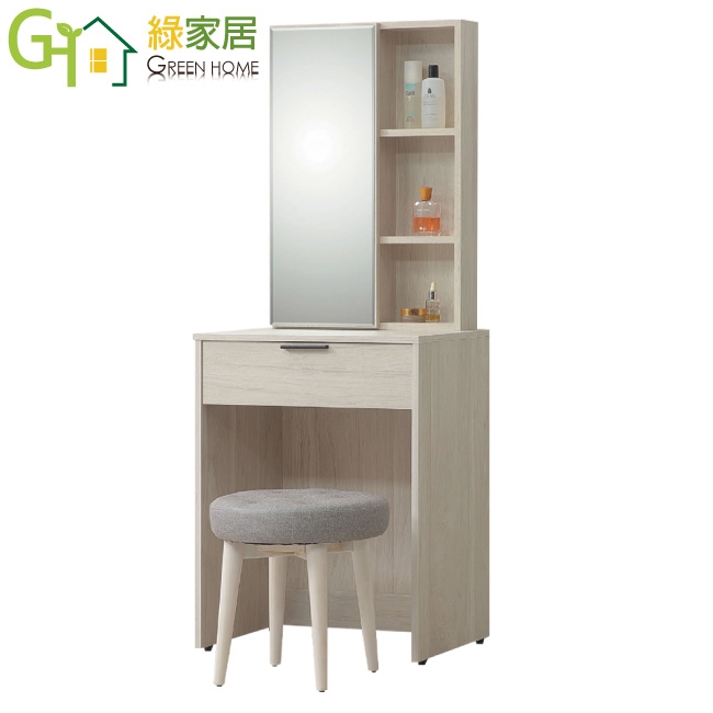 ★偏遠地區需額外加收運費,下標請先問與答詢問★ ★下訂前注意 由於商品流動較快,下訂前請先詢問是否有貨在下訂喔~★ 【綠家居】夏斯2尺開合鏡面鏡台/化妝台組合(含化妝椅) 橡木紋色系+安心材質製造,使用放心+搭配居家更便利,採用防蛀木心板+防潮耐磨底座+五金滑軌結構+強化玻璃鏡面+化妝椅實木腳座+貓抓皮革坐墊等安心材質製造 ,外層採用防潮耐磨噴漆處理搭配採用開合鏡面櫃+單抽屜+內&外開放層格等收納空間設計,全由專人配送到家,專業安心服務,替你省下更多時間!