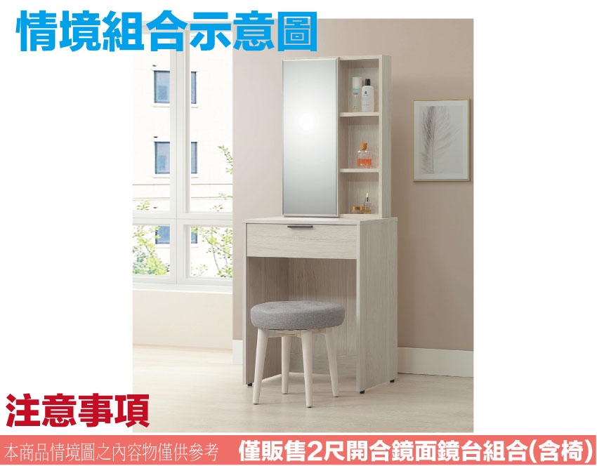 - ◆產品名稱:【綠家居】夏斯2尺開合鏡面鏡台/化妝台組合(含化妝椅)