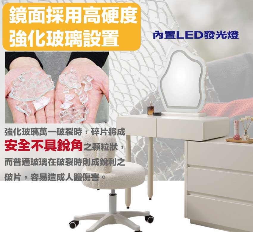 可升降化妝椅+強化玻璃鏡面