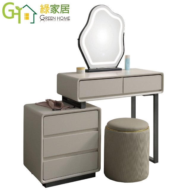 【綠家居】羅德2.7尺伸縮觸控鏡面鏡台組合(含化妝椅)