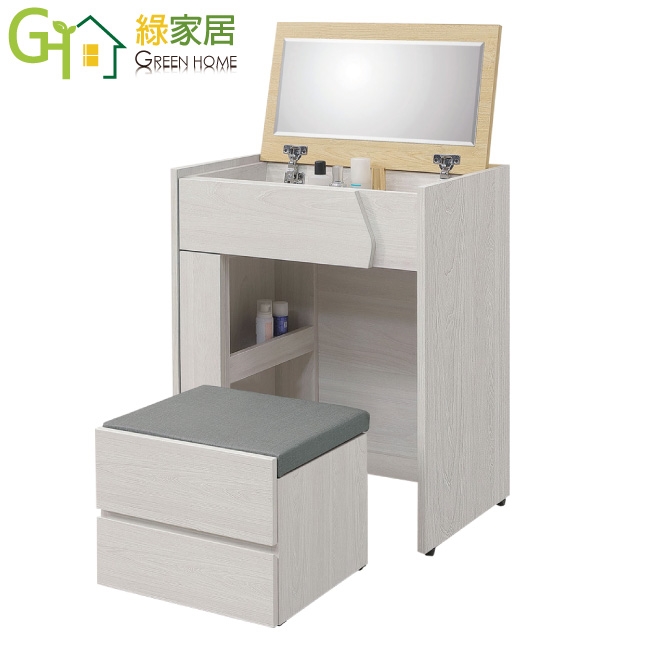【綠家居】弗格2尺多功能可變化上掀鏡台組合(含化妝椅)