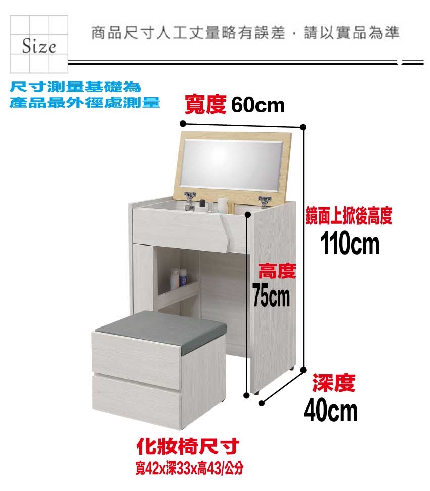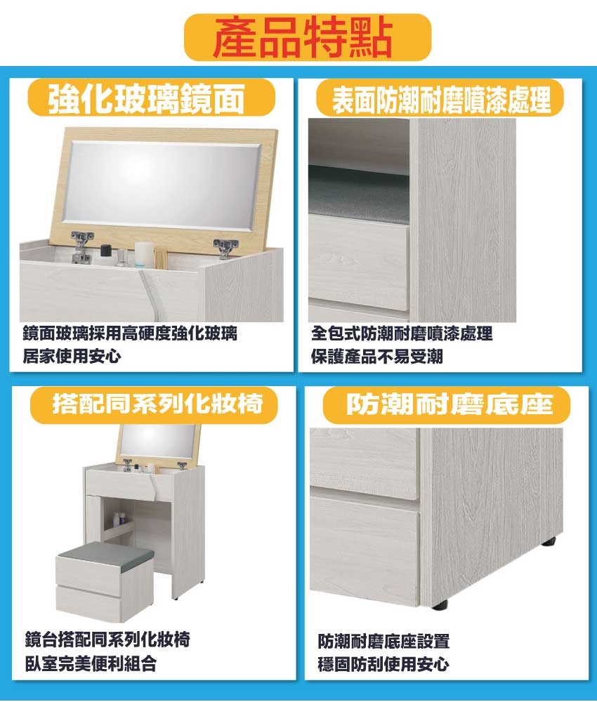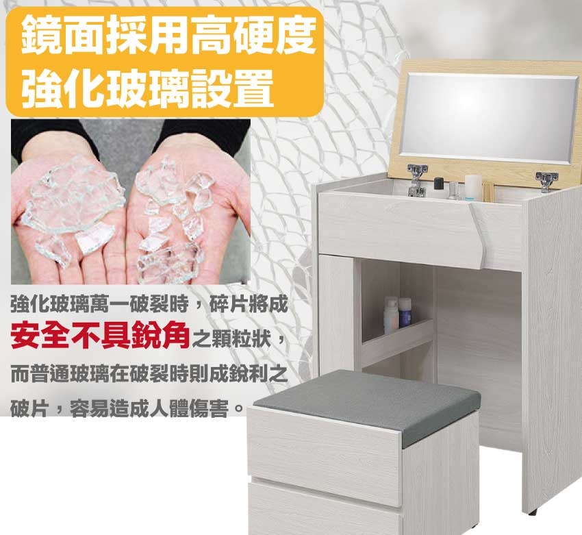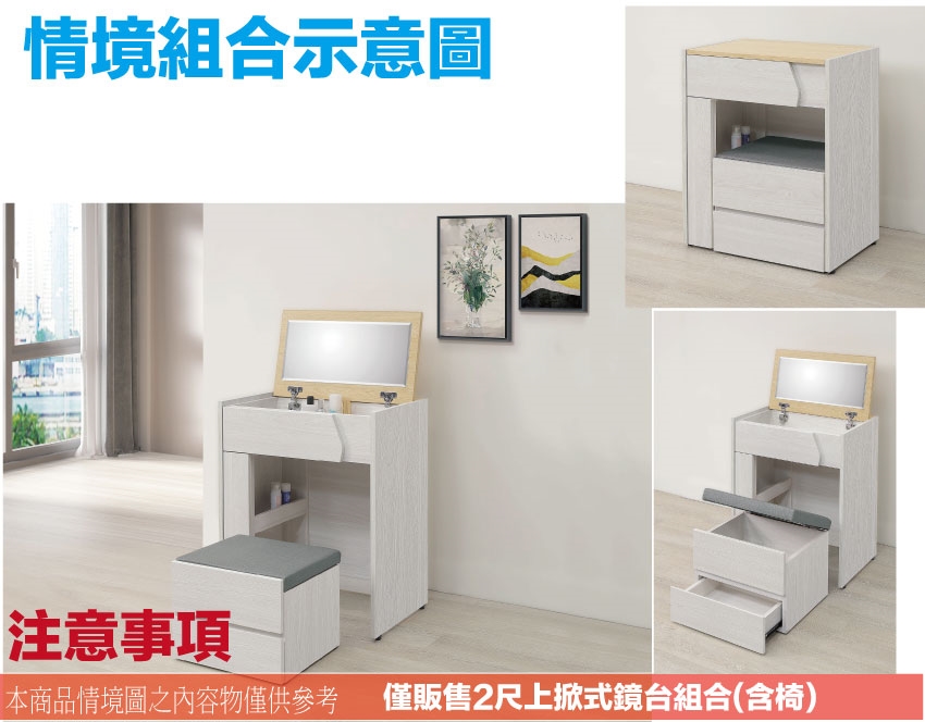 - ◆產品名稱:【綠家居】弗格2尺多功能可變化上掀鏡台組合(含化妝椅)