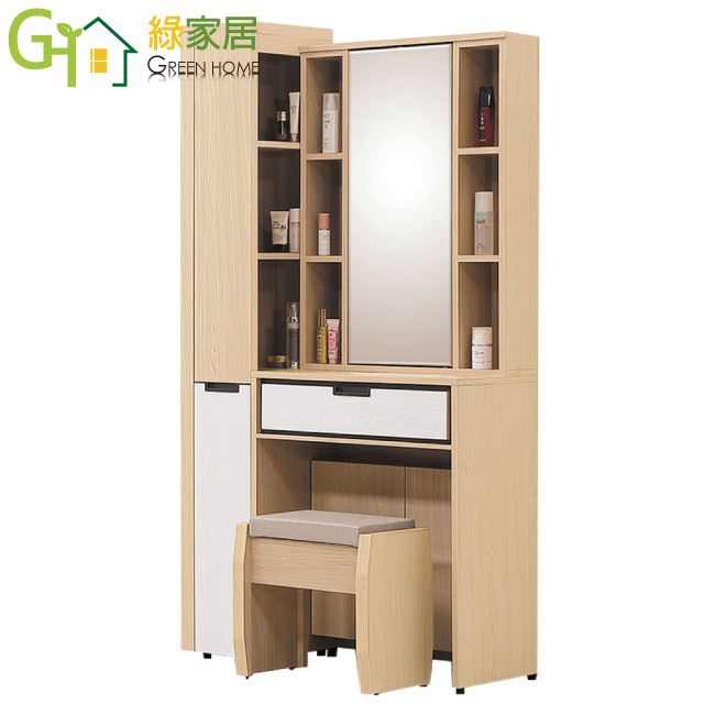 【綠家居】亞卡利雙色2.8尺旋轉鏡面鏡台/化妝台組合(鏡台+側拉鏡面櫃+含化妝椅)